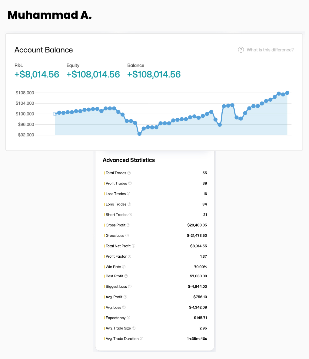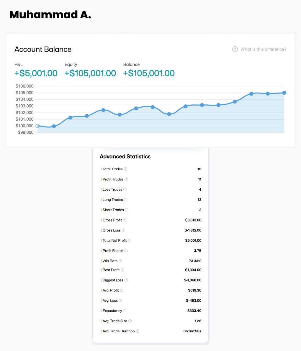 Muhammad‘s $100K High Stakes Evaluation Account – Step 1