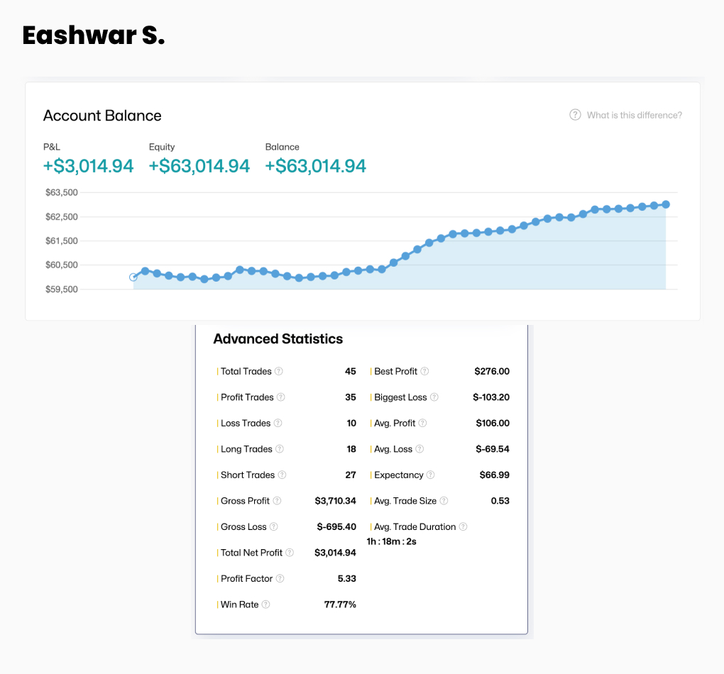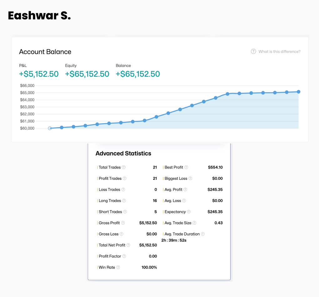 Being part of The5ers is a meaningful step in my journey — a chance to scale, stay accountable, and also share back with the trading community. I’m also working on launching an educational initiative to guide aspiring traders with structured, no-hype trading systems.